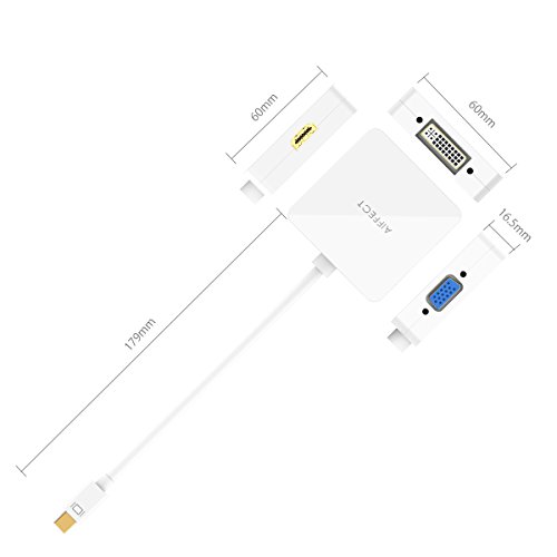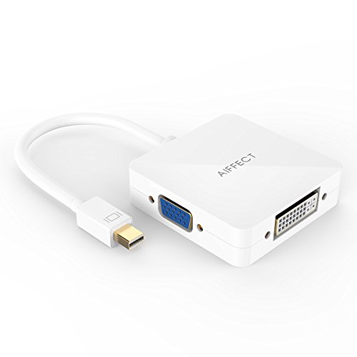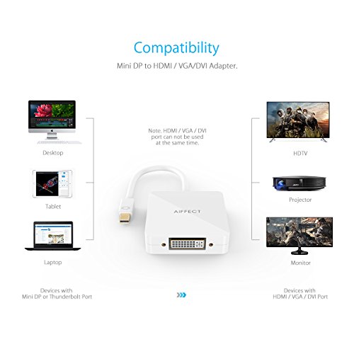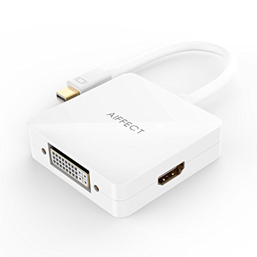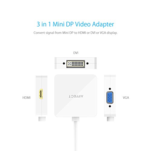 [ 4K Upgraded Version ]AIFFECT Mini DisplayPort (Thunderbolt 2 Port Compatible) to HDMI VGA DVI male to female 3 in 1 Adapter - White