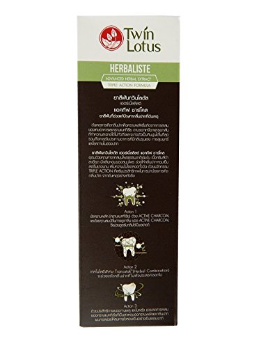 -. Binding : Health and Beauty -. Brand : Twin Lotus -. EAN : 0801295609929 -. Feature : New Active Charcoal Toothpaste, Advanced Herbal Extract. / Triple Action Formula (1.Remove / Kill Bacteria , 2 .Remove Malodor , 3. Mask Malodor ) and Remove Bad Breath with ACTIVE CHARCOAL (Activated Carbon Charcoal) / Product of Thailand. Size : 50 Grams / Pack of 3 and Shipped from US (FBA) / Arrive you within 5 day and satisfaction is guaranteed -. IsAdultProduct : 0 -. Label : Thailand -. Manufacturer : Thailand -. Model : No Model -. MPN : No Part Number -. PackageQuantity : 3 -. PartNumber : No Part Number -. ProductGroup : Health and Beauty -. ProductTypeName : HEALTH_PERSONAL_CARE -. Publisher : Thailand -. Studio : Thailand -. Title : Twin Lotus Active Charcoal Toothpaste Herbaliste Triple Action 50 g (1.6 Oz) X 3 Tubes (FBA) -. UPC : 801295609929