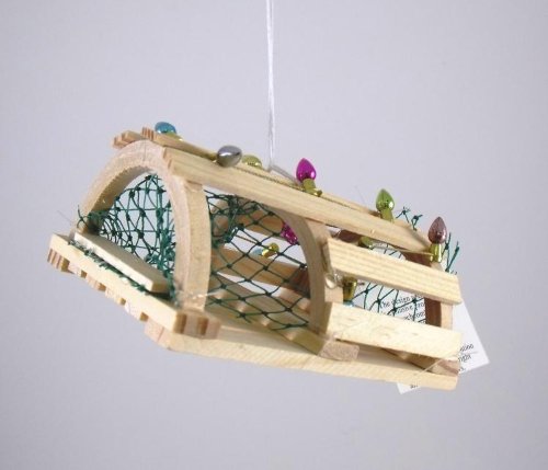 Coastal Nautical Wooden Lobster Trap Christmas Holiday Ornament