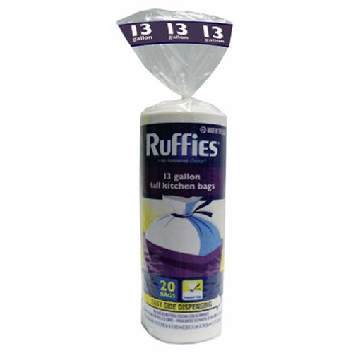 Berry Plastics 929602 Ruffies 13-Gallon Tall Kitchen Trash Bag, Easy Side Dispensing, White, 20-Count