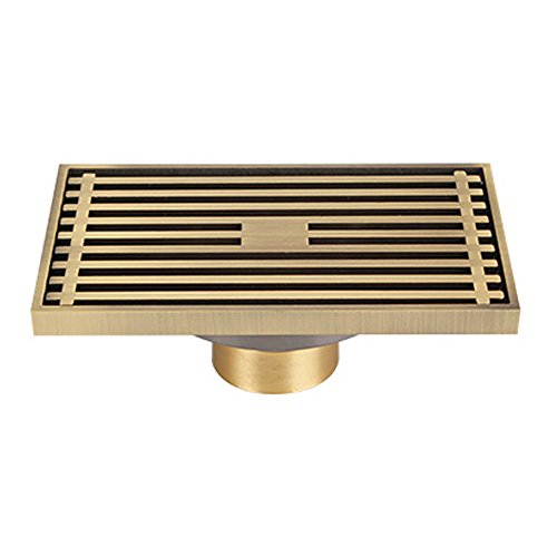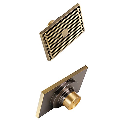Linear Shower Floor Drain with Removable Cover and Strainer Make of SUS 304 Stainless Steel, 3.9" by 3.9" by1.8", 4MM-Thick Panel, Antiqe Brass