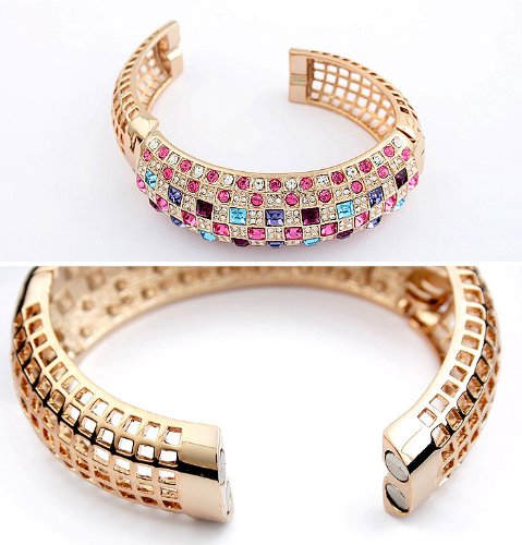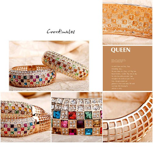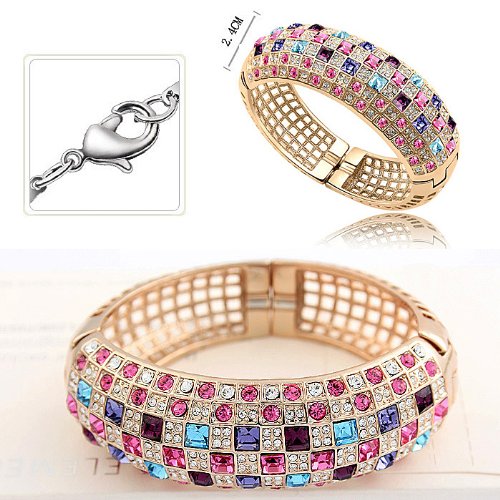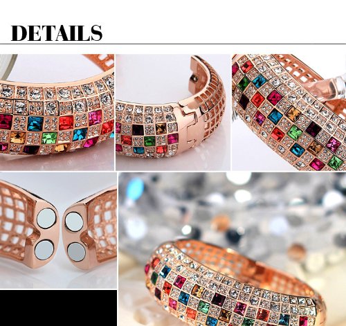 -. Title : Beautiful Elegant Bracelet "Luxury Queen" Bangle Fashion Jewelry Made with 100% Genuine Swarovski Crystals Great Gift Gold Rose Red Color