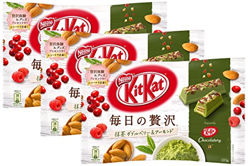 原材料:準チョコレート(砂糖、乳糖、植物油脂、全粉乳、ココアバター)、小麦粉、乳糖、植物油脂、アーモンド、クランベリー加工品(糖漬け乾燥クランベリー、ぶどう糖)、砂糖、抹茶ペースト、抹茶、ラズベリー果汁パウダー、全粉乳、イースト、ココアパウダー、カカオマス、ココアバター、乳化剤、重曹、香料、イーストフード、(原材料の一部に大豆を含む)