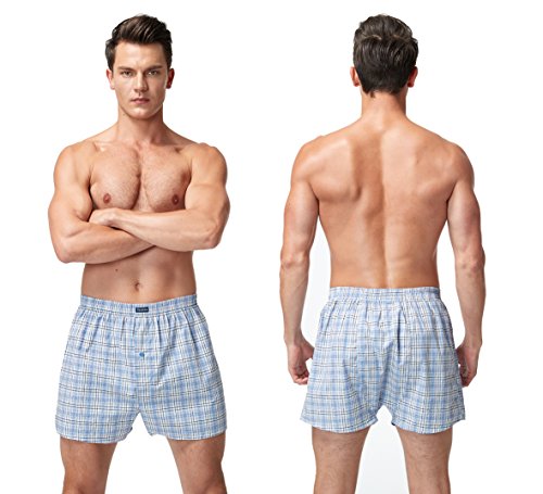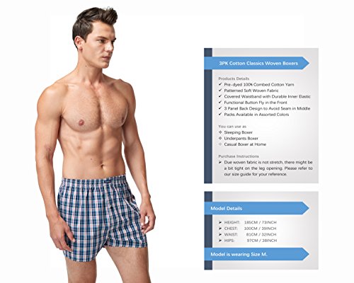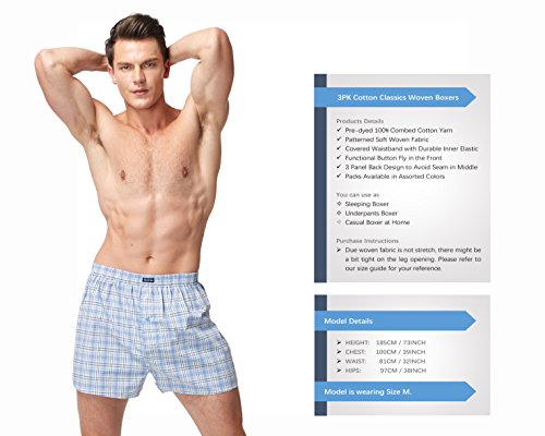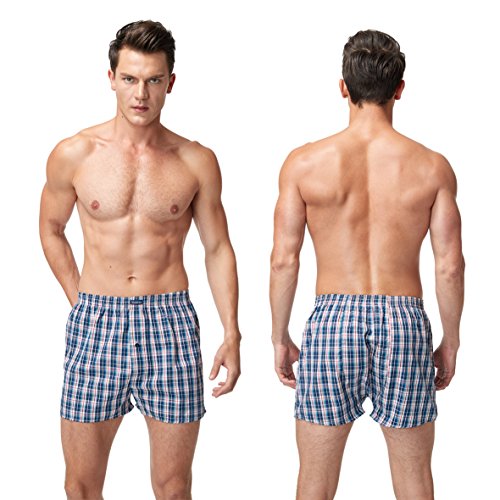 -. Feature : ☑【Soft Material】: Men Boxers Shorts use 100% Premium Combed fine cotton yarn, lightweight, make the Woven Fabric soft, hypoallergenic, breathable, wrinkle free and fade resistant and protect against any shrinkage after washing. Tight weave of Combed cotton does causes any liquids to bead up and sit on the Underwear surface for a short time instead of soaking immediately, avoid embarrassment / ☑【Elastane and Durable】: Elastane waistband of Men's Boxers Briefs with four-sewn, 4-way stretch fabrication allows high mobility in any direction and activity to provides support and comfort. High tensile strength makes it strong, durable and less likely to rip or tear, maintains brightness and shape / ☑【Freedom and Comfort】: Cotton wrapped elastic band, skin doesn't need to direct contact with the elastic band, itch-free, More comfortable and beautiful. Compared with the tight underwear, mouth plus paragraph design, leg circumference increased, relaxed design, break shackles, casual Loose Fitting with button fly, give you free space.Suitable for daily home, sleep, sP.R.Ing, summer and autumn / ☑【Wicking properties】 : Performance waistband and moisture transport system of our boxer briefs which wicks sweat and dries quickly, anti-odour technology which prevents the growth of odour-causing microbes / ☑【Warranty】:We promise you every quality Underwear and friendly customer service