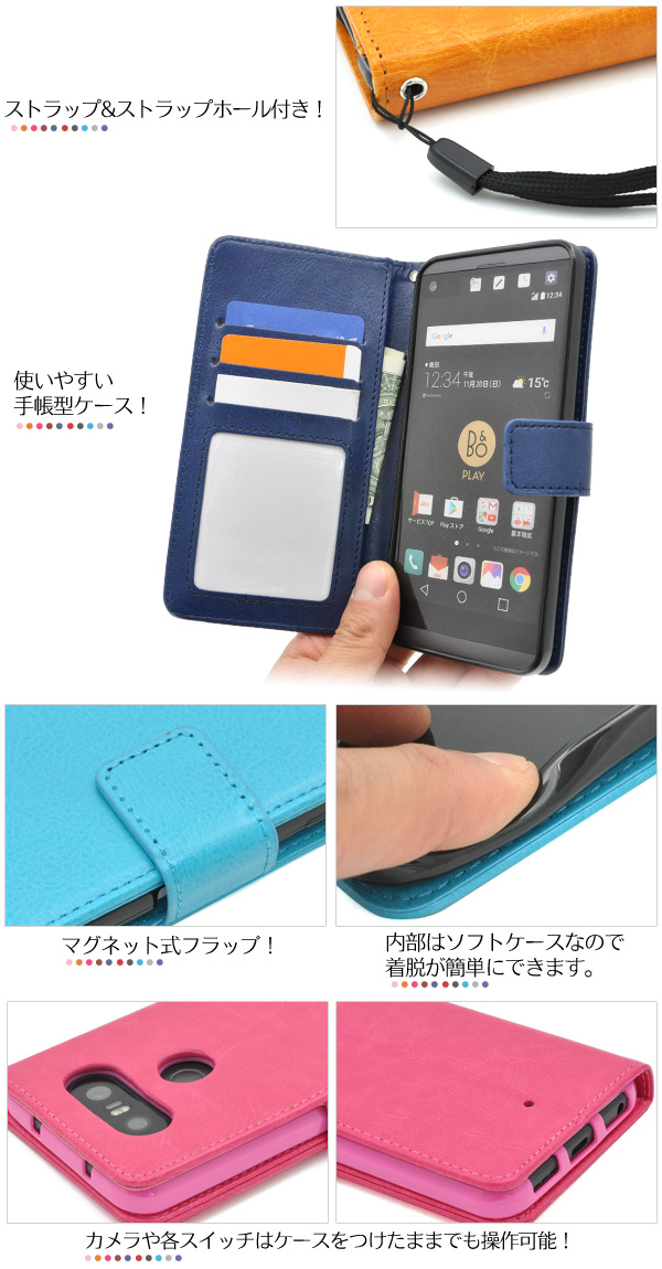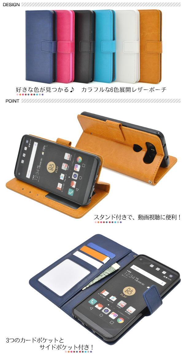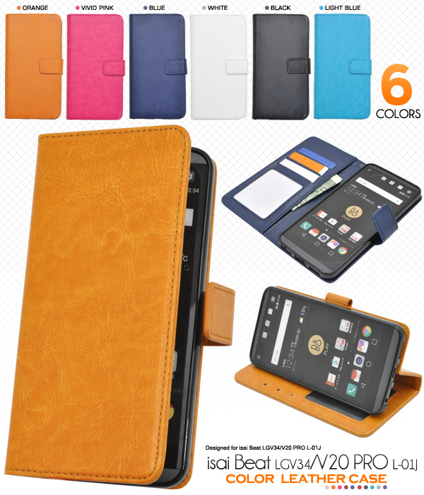 カラフルな6色展開!使いやすい手帳型ケース! isai Beat LGV34/V20 PRO L-01J用カラーレザーケースポーチ | | | |