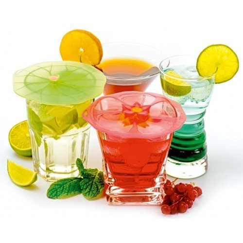 Set of 6 (2 hibiscus, 2 sunflower, 2 lily pad) 4 covers perfect for cocktails or small bowls FDA food grade silicone Oven, microwave and dishwasher safe Seals tight on all smooth rims