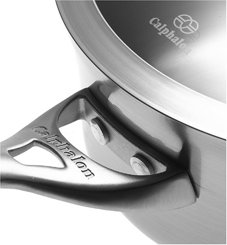 Long, brushed stainless steel handles stay cool on the stovetop. All cookware is dishwasher-safe and carries Calphalon's full lifetime warranty.
