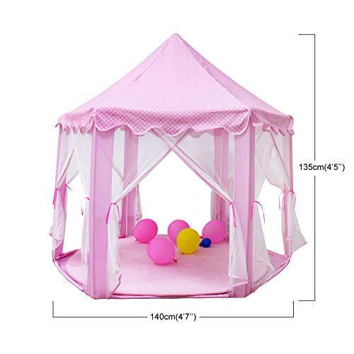 Features: * Tent Dimension in inch: 55" (Diameter) x 53" (H). Specially designed hexagon, provide a perfectly sized space, giving your children plenty of room to stand and play, even an adult can fit inside.
