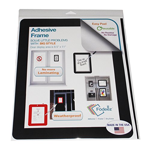 Fodeez Frames Self-Stick Adhesive Sign Display/Dry Erase Board, Black, 8.5"x11" Pack of 5 (FF-8511-05-SOL-BLA)