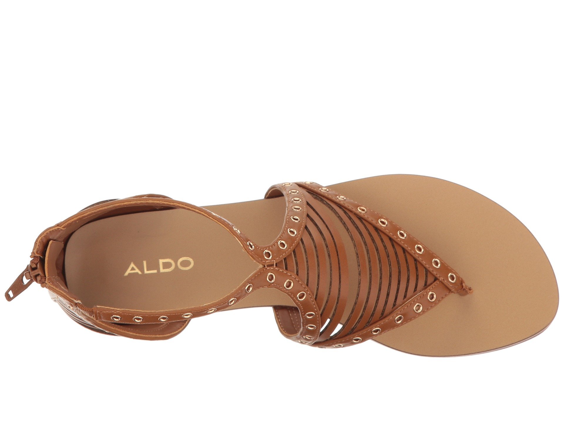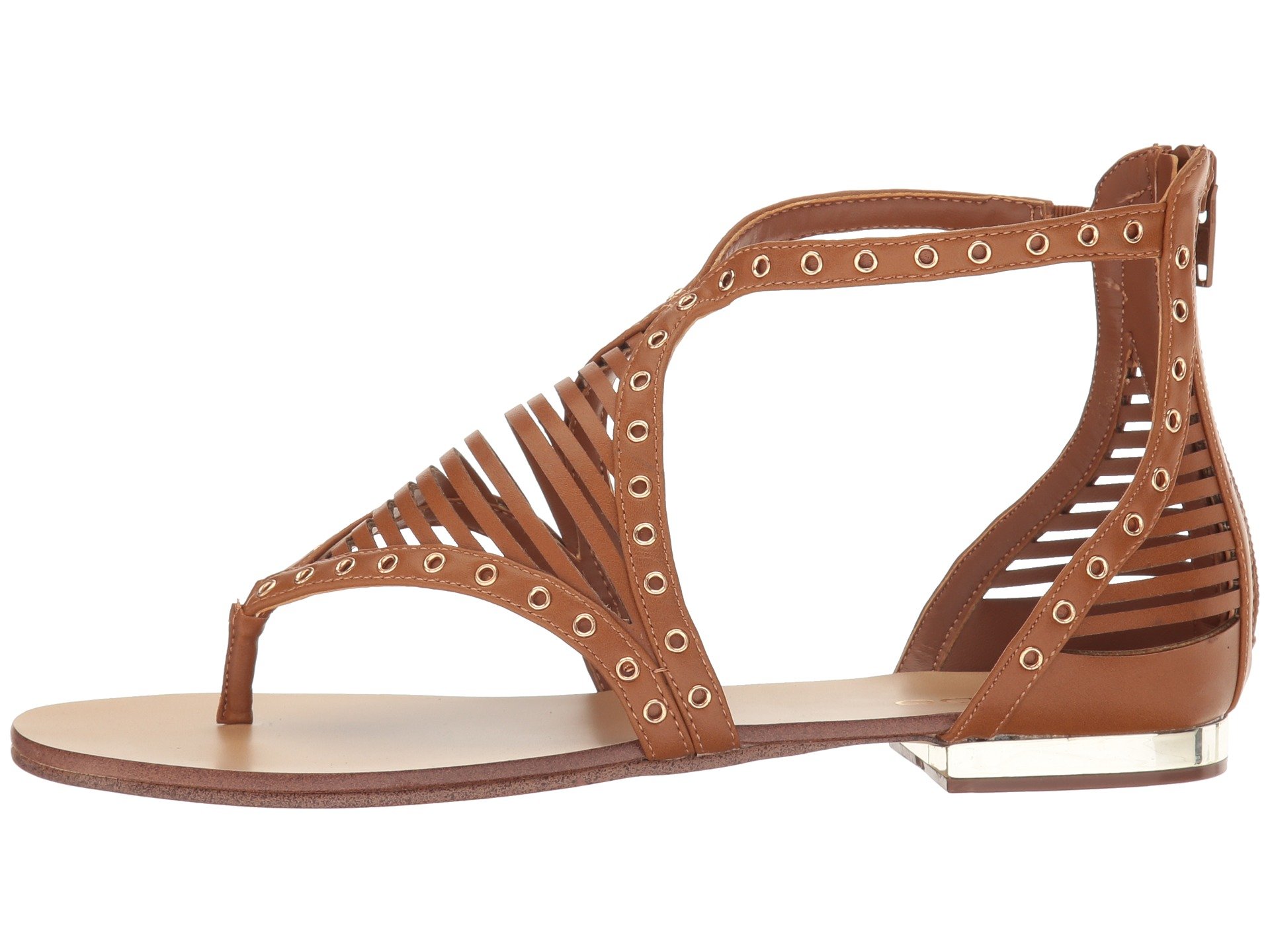 | Product Information SKU: #8879124Brighten up your ensembles with the ALDO? Xenna sandal.Synthetic upper with metal eyelet detail.Back zipper closure.Thong construction. Man-made lining and insole.Low metallic heel.Man-made sole.Imported.Product measurements were taken using size 38 (US Women's 7.5), width B - Medium. Please note that measurements may vary by size.Weight of footwear is based on a single item, not a pair.Measurements: Heel Height: 1?2 in Weight: 7 oz |
