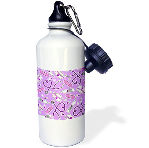 3dRose wb_185469_1 Nurse Love Pattern Purple Sports Water Bottle, 21 oz, White