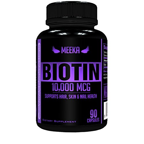 -. Title : Meeka Nutrition - All Natural Hair Growth Biotin 10,000 MCG, Maximum Strength, Non-GMO, High Potency Veggie Capsule; Supports Hair, Skin & Nail Health