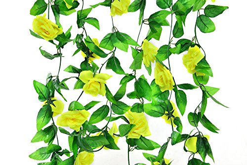 79 Feet - Artificial Rose Silk Flower Green Leaf Vine Garland Home Wall Party Decor Wedding Decal (Yellow)