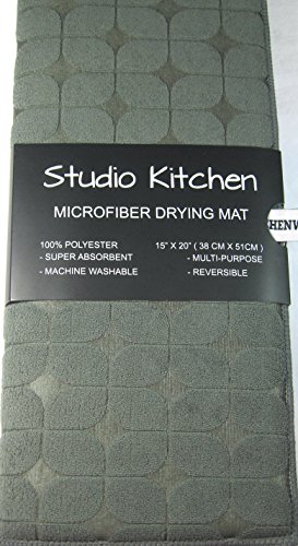 -. Title : Studio Kitchen Microfiber Drying Mat Dk. Gray 15" x 20"" 100% Poly. Reversible