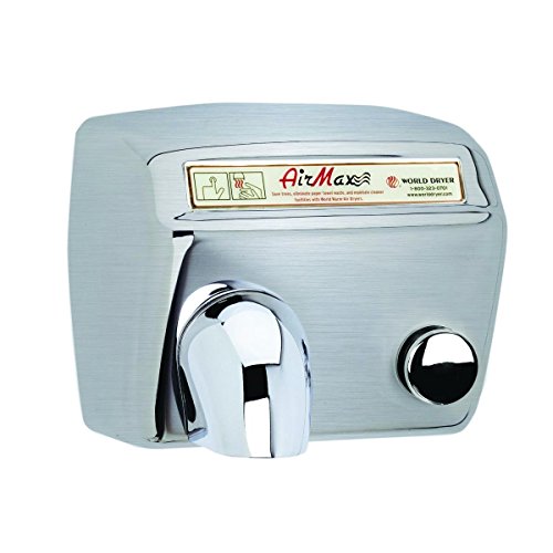World Dryer DM5-973 AirMax High Speed and Heavy Duty Hand Dryers, Push-Button, 110-120V, Stainless Steel Brushed