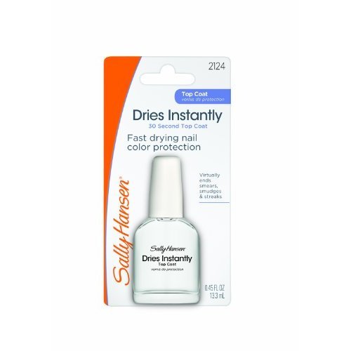 Studio : Sally Hansen Publisher : Sally Hansen Binding : Misc. Product Description Sally Hansen dries instantly is a quick,-drying top coat that resists smudging, chipping and fading. Virtually ends smears, smudges and streaks. Dries, seals and shines for a strong, glass-like finish. UV absorbers help protect nail color from yellowing and fading caused by exposure to sunlight and environmental stresses. Use between manicures to freshen nail color with brilliant shine. 0