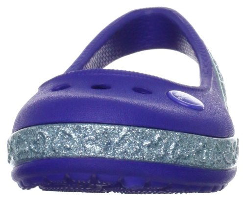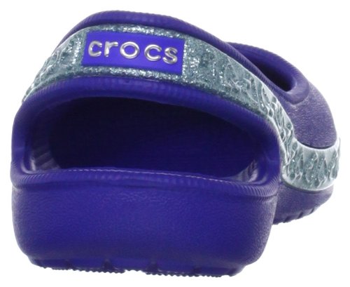 If your girl is about glitter and hearts and all that's sweet, she'll have a lot of fun with this flat. Light and comfortable, with plenty of charm. Slingback style gives her a more secure fit. Massage-pod footbed. Ventilation holes also give her room for Jibbitz charms. Fully-molded Croslite material for lightweight cushioning and comfort. Non-marking outsole.Feature