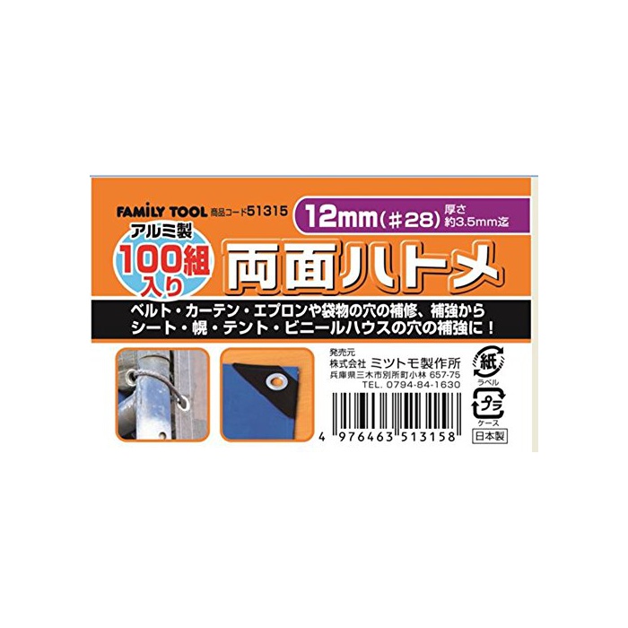 원본상품명:ファミリツル(FAMILY TOOL) 面ハトメ 12mm アルミ製 51315