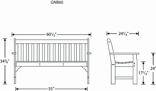 -. Feature : With room for three, this stylish 60" Bench is made with fade-resistant POLYWOOD recycled lumber / POLYWOOD recycled HDPE lumber has the look of painted wood without the upkeep real wood requires; requires no painting, staining, or waterproofing / Heavy-duty construction withstands nature's elements; will not splinter, crack, chip, peel or rot and is resistant to stains, insects, fungi, and salt spray / Some assembly required; commercial grade stainless steel hardware; made in the USA / Measures 60-1/2 inches wide by 24 inches deep by 35-1/4 inches high; 20-year limited warranty