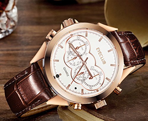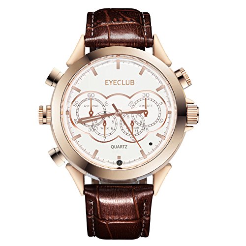 -. Feature : 1.This hidden camera looks just like a men's gadget making it discreet and impossible for anyone to think of it. Besides, no light is on when working. / 2.With its hidden camera lens, you can use it to record what is going. Its quality is enough for you to see what was happening while biking, walking or meeting. / 3.It is easy to use. There are only two function buttons. The gadget will go accurately after a simple adjusting. Simply set time stamp when connecting it to your PC to view what was there. / 4.With golden films coated on the stainless steel case, elaborately designed dial, and matt brown band, this hidden camera is stylish. / 5.An 8GB memory card is built in. No software or driver is required in use. You will get: Full 1-Year US Warranty and Lifetime Support Provided Directly from Eyeclub.