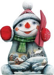 G. Debrekht Brushin' Through The Snow Snowman Hand-Painted Wood Carving