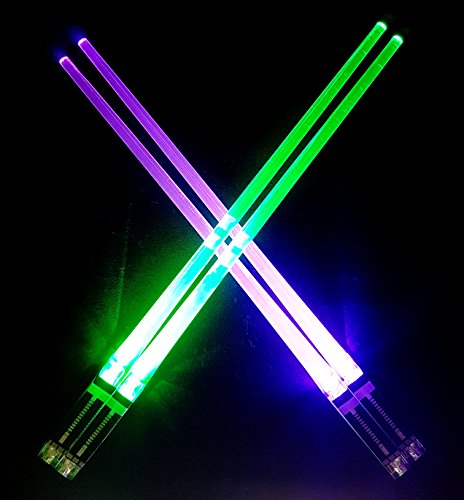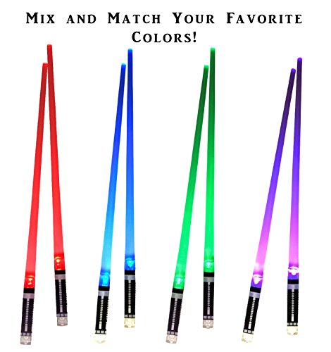 Lightsaber Light up LED Chopsticks Multi function for Star Wars Theme Party Fun, Eat in the Dark (Red Blue Purple Green – Mix and Match Colors)! - Each Pair Sold Separately