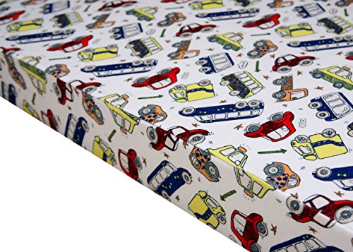 Premium Fitted Pack N Play Playard Sheet made with 100% ORGANIC Cotton,Fits Perfectly Any Standard Playard Mattress up to 3" Thick, CARS