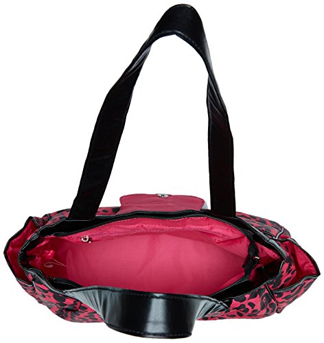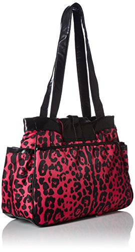 Bright pink colors make our cheetah print tote stand out among it's peers. Hobo shape and soft handles make this a convenient and fashionable bag for quick trips with baby.