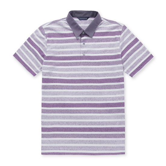 - 그라데이션 컬러감의 스트라이프 패턴을 매치한 남성 티셔츠.