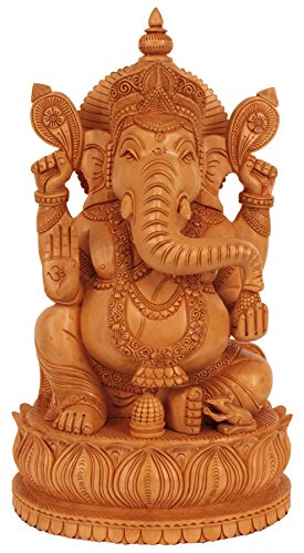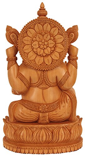 CraftVatika 12 Inches Ganesha Idol Hindu Elephant Face Lord Handmade Wood Sculpture Ganesh Statue Gift