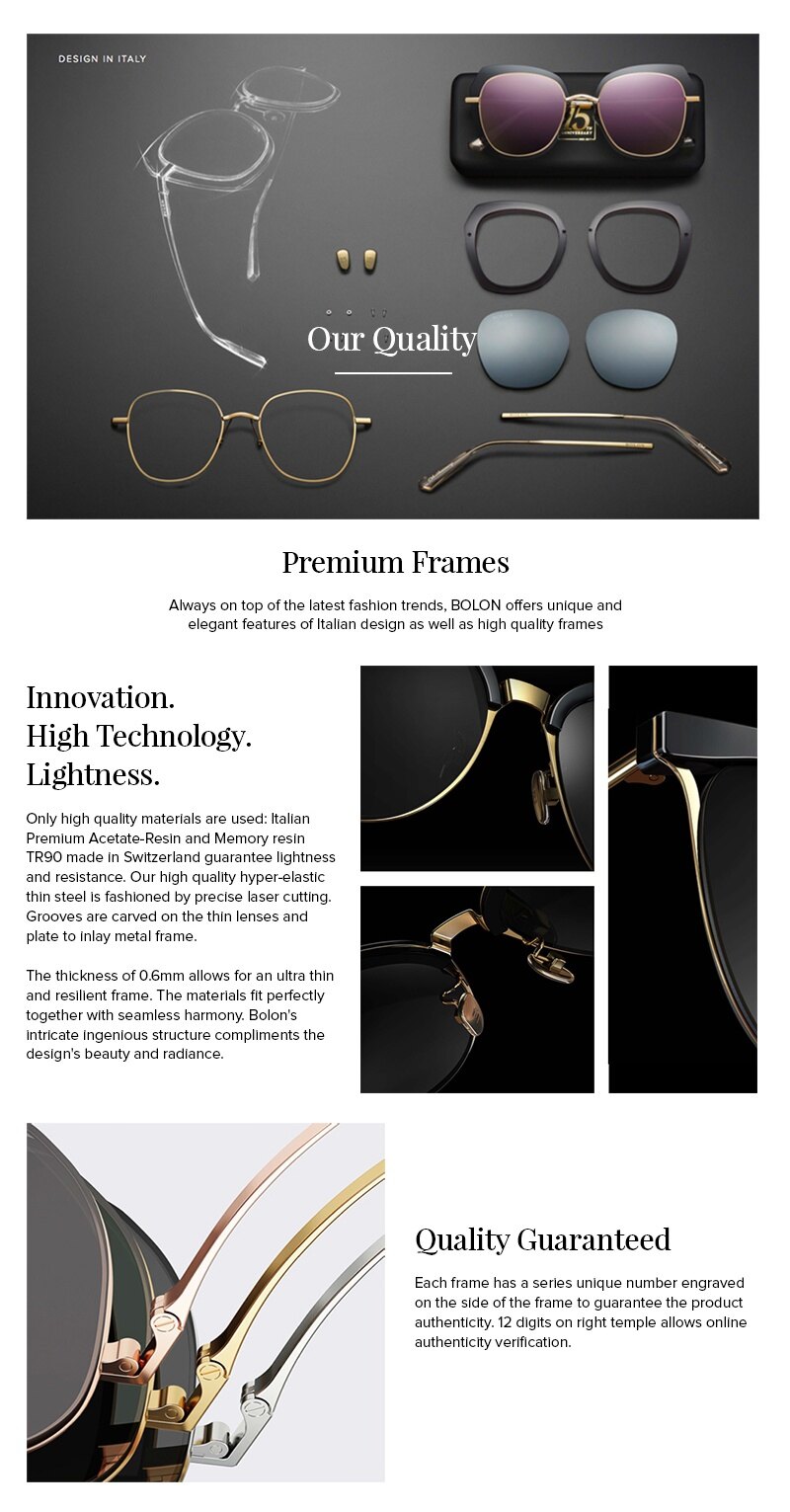 These BOLON OVERSIZE BLACK frames produced by stamping with imported high quality metal is a perfect match for all kinds of faces. It's full of modern sense as inspired by Bauhaus style. The slender light temples, the tapered design at the junction between them and their sheaths, improve comfort and show the equal importance that is attached to the glasses in whole, and in part. Feature a GREY color HD POLARIZED and UV400 protection lenses. Comes with a free premium black leather protective case & a branded cleaning cloth.
