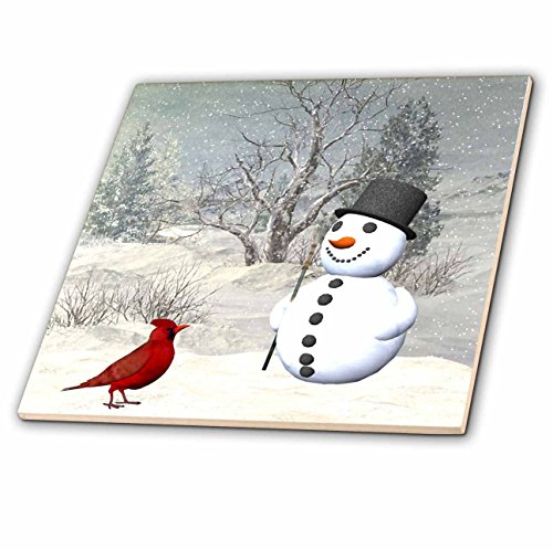 3dRose ct_18581_4 Cardinal and Snowman in Winter Ceramic Tile, 12"