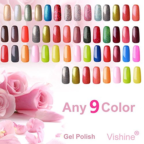 -. Binding : Misc. -. Brand : Vishine -. Feature : Exclusive Brand:Vishine; Capacity: 15ml / Certification: MSDS,FDA,SGS / Features: Long lasting for at least 2-3 weeks, fantastic and super bright nails for you. / No grinding. No filing. No drying time after application: curing with UV gel. End of redoing from scratch / No more imperfect surface, dents or nails cut. Color resistant, flexible and shiny resistant to any test -. Label : Vishine -. Manufacturer : Vishine -. ProductGroup : Beauty -. ProductTypeName : BEAUTY -. Publisher : Vishine -. Studio : Vishine -. Title : Vishine Pick Any Colours Soak Off Gel Nail Polish Top Base Coat Manicure Gift Set