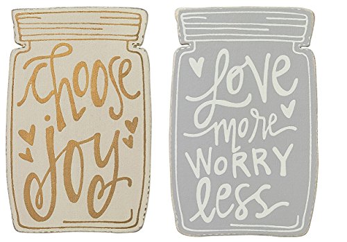 Bundle of 2 Collins Small Mason Jar Shaped Decorative Magnets - "Choose Joy" and "Love More Worry Less"