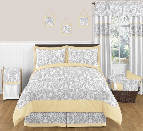 -. Title : Sweet Jojo Designs Yellow, Gray and White Damask Print Avery Full Length Double Zippered Maternity Body Pillow Case Cover