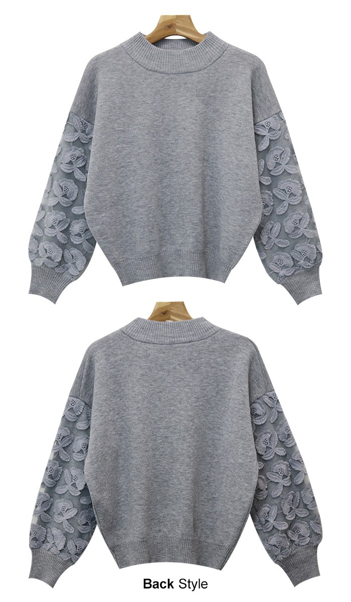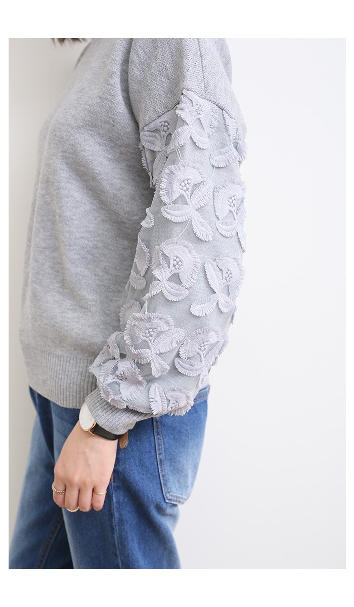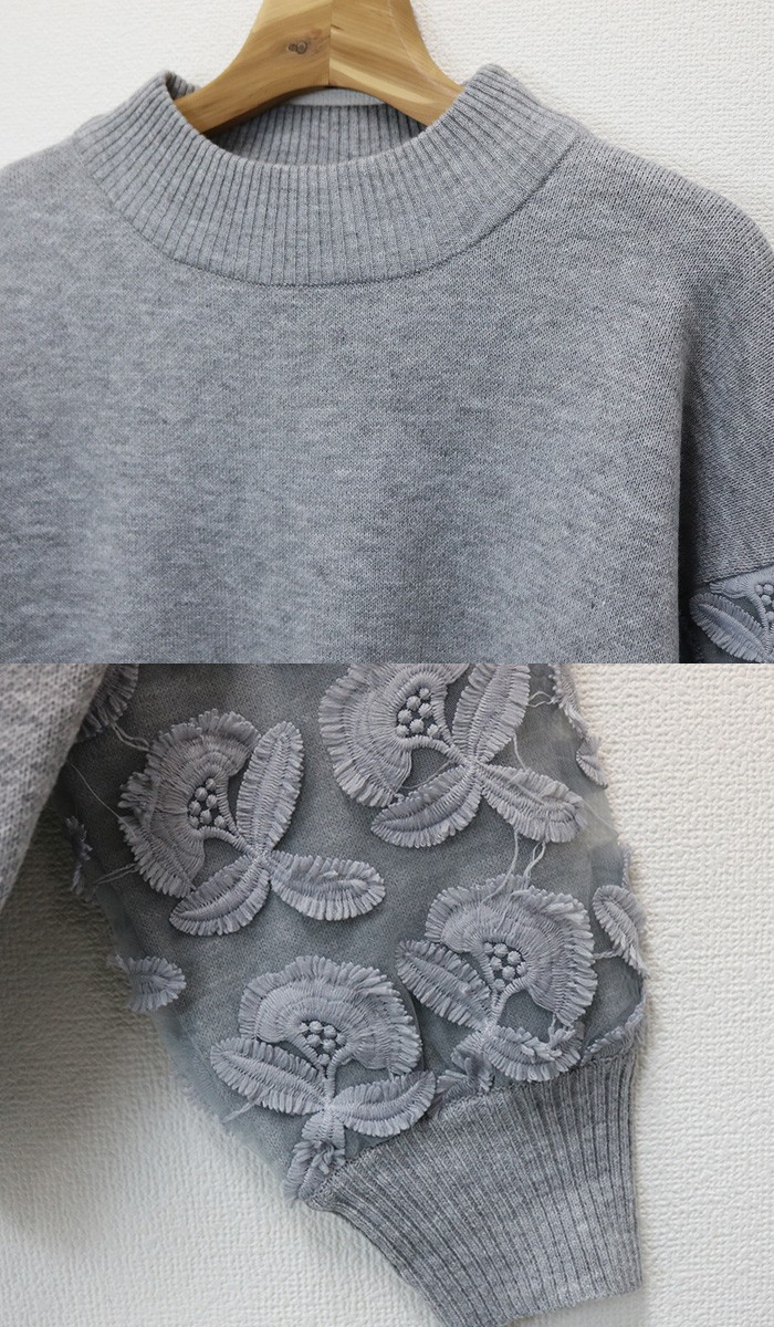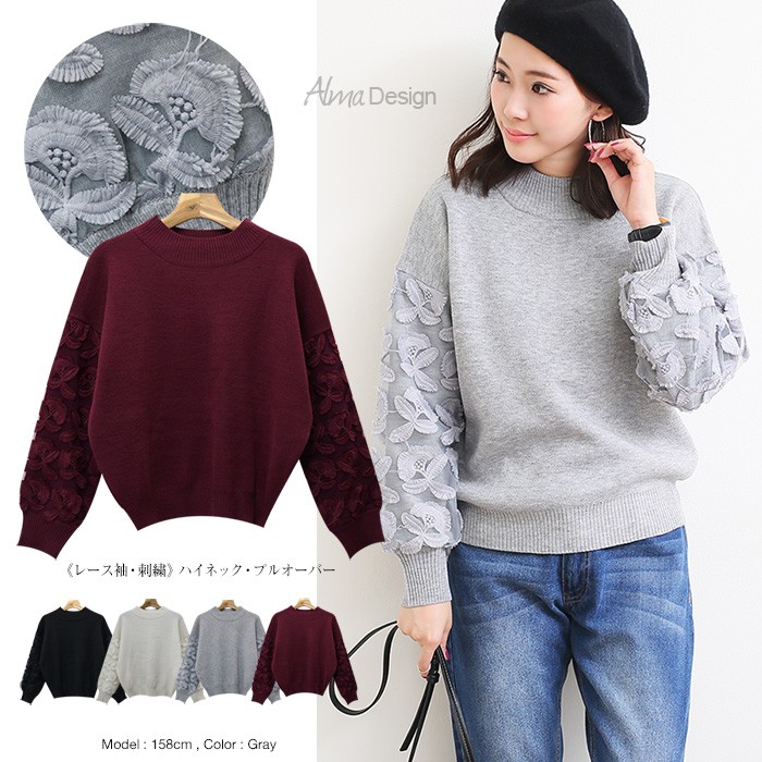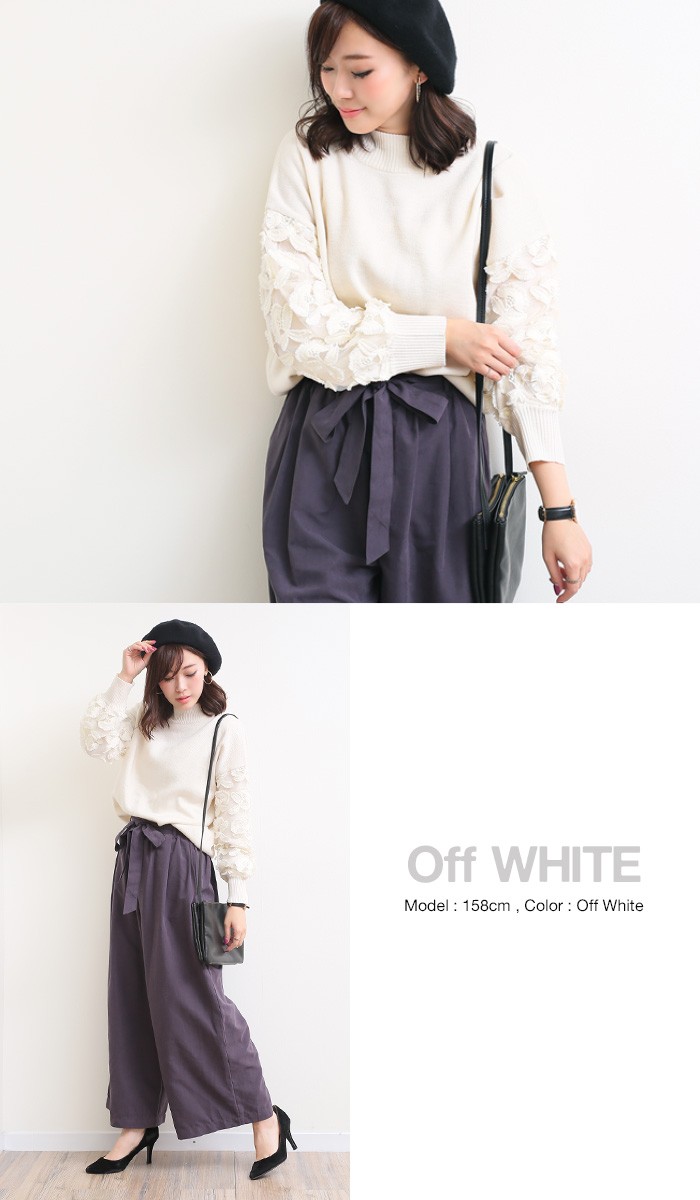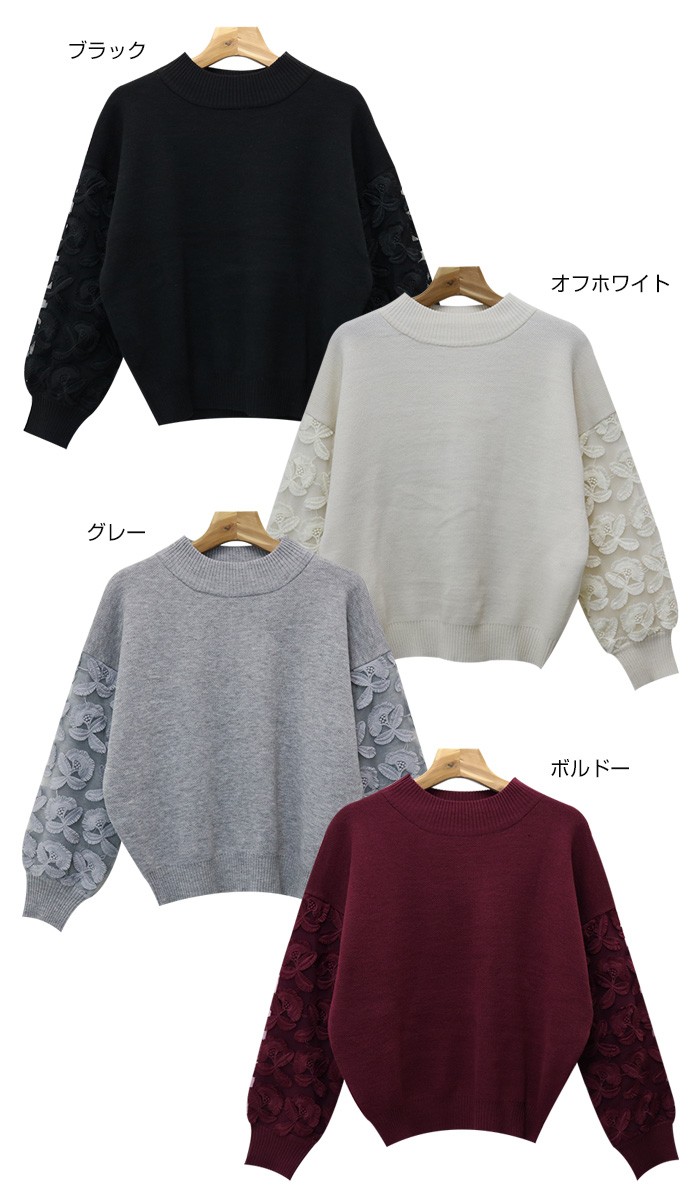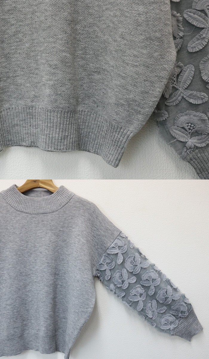 厚みのあるざっくりニットにレースの袖がフェミニンでカワイイ!!