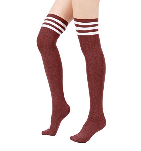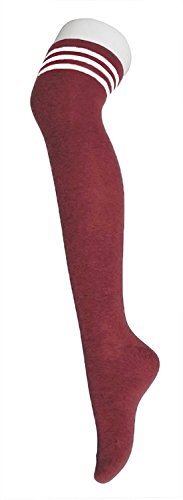 -. Title : SP.R.Ing fever Women Over Knee Stripe High Stockings Fashion Athletic Retro Socks Burgundy