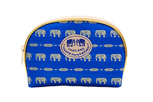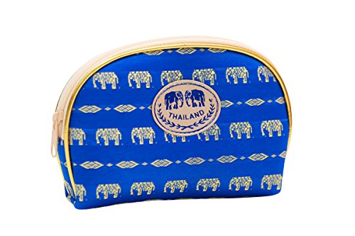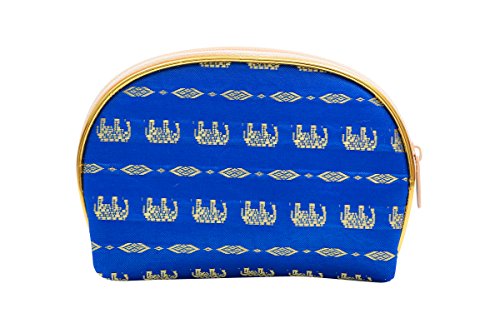 Blue Elephant Pattern Half Moon Cosmetic Beauty Bag Travel Handy Organizer Pouch Makeup