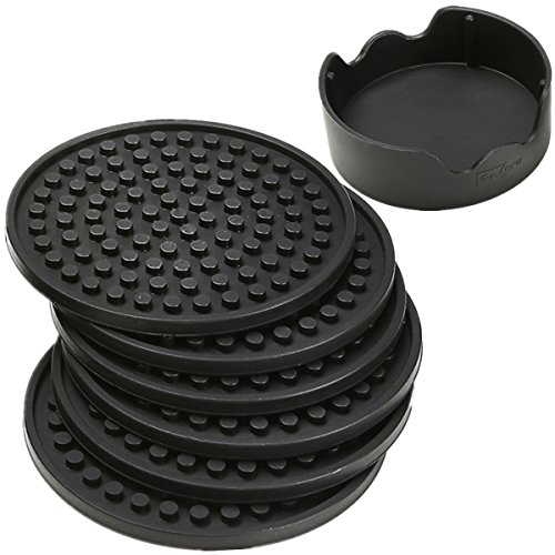 - Feature : Big 4.3 inch (11cm) size Suits ALL Cups and Mugs. Being the largest size coaster in the market, you will never have spillage since your Drinkware is well contained but not sticked to the coaster / DEEPER GROOVED PATTERNS on Both Sides protect your furnitures from Excess Condensation/Liquids from Cold beverage, Whiskey, Cocktail or beer. They will never leave any mark on your wooden table or bedstand. More wooden surface friendly than sandstone / This FOOD GRADE SILICONE tableware is Eco-friendly and Dishwasher Safe. They can be part of your home decor, barware set or bartender supplies. / IDEAL GIFT - a Cool Housewarming, Birthday Gift for Mother, Father, him, her, man, woman. Conversation starter for party, entertaining or wedding registry. / Father's day SALE now on! Click the "add to cart" button to get this exclusive product with amazon 30-day no-question-asked money back guarantee
