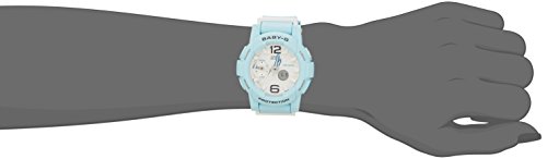 Brand, Seller, or Collection Name:Casio Model number:BGA-180BE-2BJF Part Number:BGA-180BE-2BJF Model Year:2017 Item Shape:Round Dial window material type:Mineral Glass Display Type:Analog and digital Clasp:Buckle Case material:Stainless Steel> Case diameter:44 millimeters Case Thickness:15.4 millimeters Band Material:Resin Band width:22 millimeters Band Color:Blue Dial color:White Special features:Timer, World time Item weight:1.60 Ounces Movement:Quartz