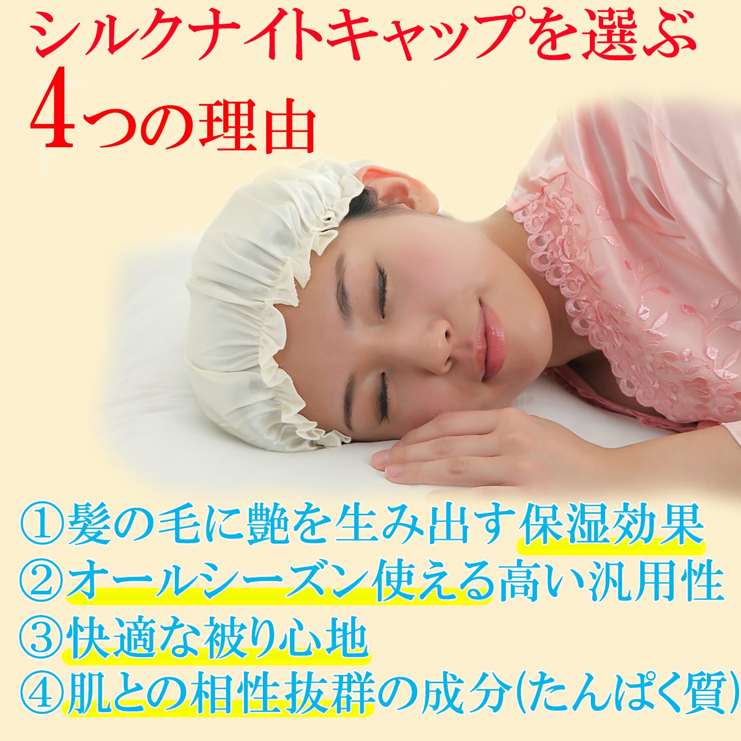 By covering the nightcap it prevents cuts, split ends, and hair loss due to friction.