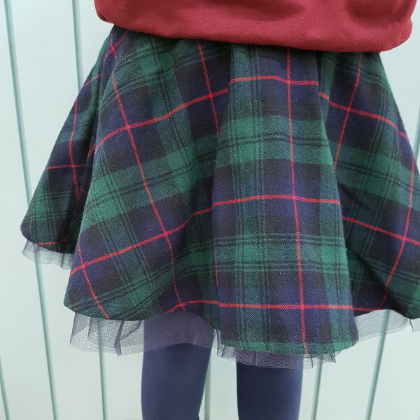 체크원단과 밑단 샤 프릴이 귀여운 치랭스