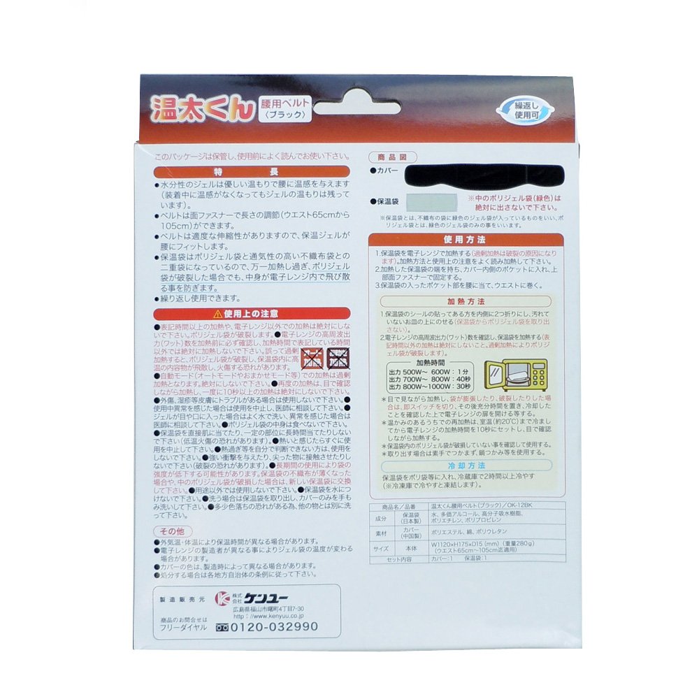 "Kota Kun waist belt black" is a thermal pad that gives a warm feeling to the waist with warmth of hot water with a moisture gel.