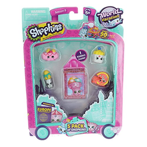 -. Feature : Collect all of the super-cute Season 8 Shopkins characters and you might be lucky enough to find some rare characters too! / First stop in the Shopkins World Vacation: Europe! Collect Shopkins from teams like German Jet Set, Italian Tour, Spanish Stopover and UK Holiday in this 5-Pack of Shopkins. / Comes with a "hotel room" that you can connect together and build the ultimate European city for you to display your Shopkins! / Comes with 1 single room and 1 collector's guide! / Includes RARE Celina Crepe (8-010) & RARE Kay Cupcake (8-026)!