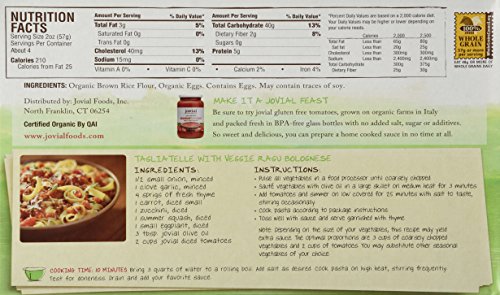-. Binding : Misc. -. Brand : Jovial -. EAN : 0815421011302 -. Feature : Developed for taste and texture first, gluten free second / The most authentic gluten free pasta available / Packaged in a carton made from 80% recycled cardboard and is 100% recyclable / Inner bag is certified 100% compostable / Certified by the Gluten Intolerance Group at a level less than 10 pm -. Label : JOVIAL -. Manufacturer : JOVIAL -. MPN : 815421011302 -. PackageQuantity : 3 -. PartNumber : 815421011302 -. ProductGroup : Grocery -. ProductTypeName : GROCERY -. Publisher : JOVIAL -. Studio : JOVIAL -. Title : Jovial Organic Gluten Free Brown Rice Pasta, Egg Tagliatelle, 9 Ounce -. UPC : 815421011302