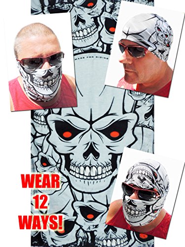 -. Title : 12-in-1 Headband - Light Grey Multi Skull Versatile Sports & Casual Headwear - Wear as a Bandana, Neck Gaiter, Balaclava, Helmet Liner, Mask - High Performance Moisture Microfiber