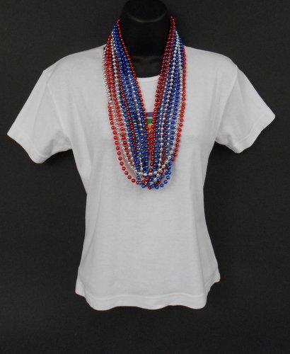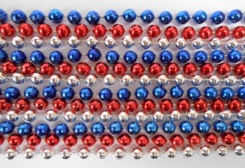 33 inch 7mm Round Metallic Red, Blue and Silver Mardi Gras Beads - 6 Dozen (72 necklaces)
