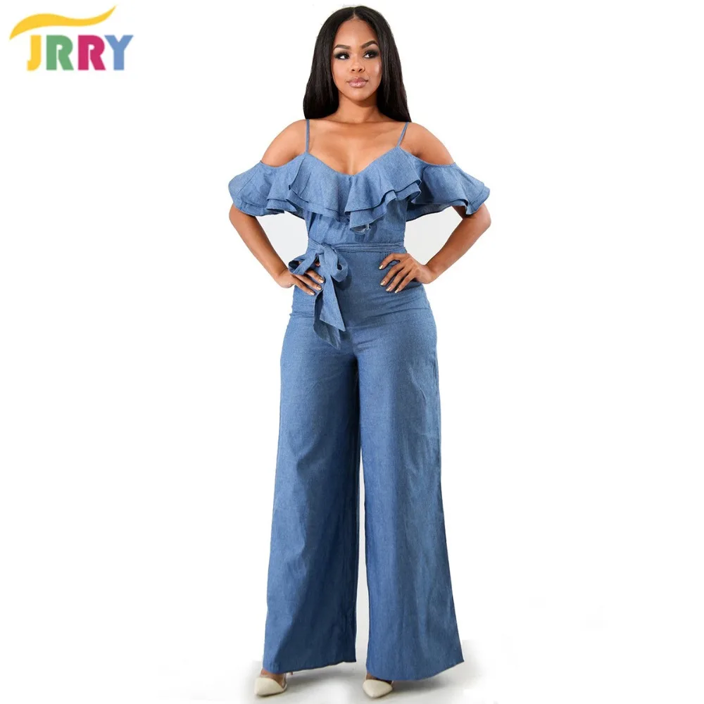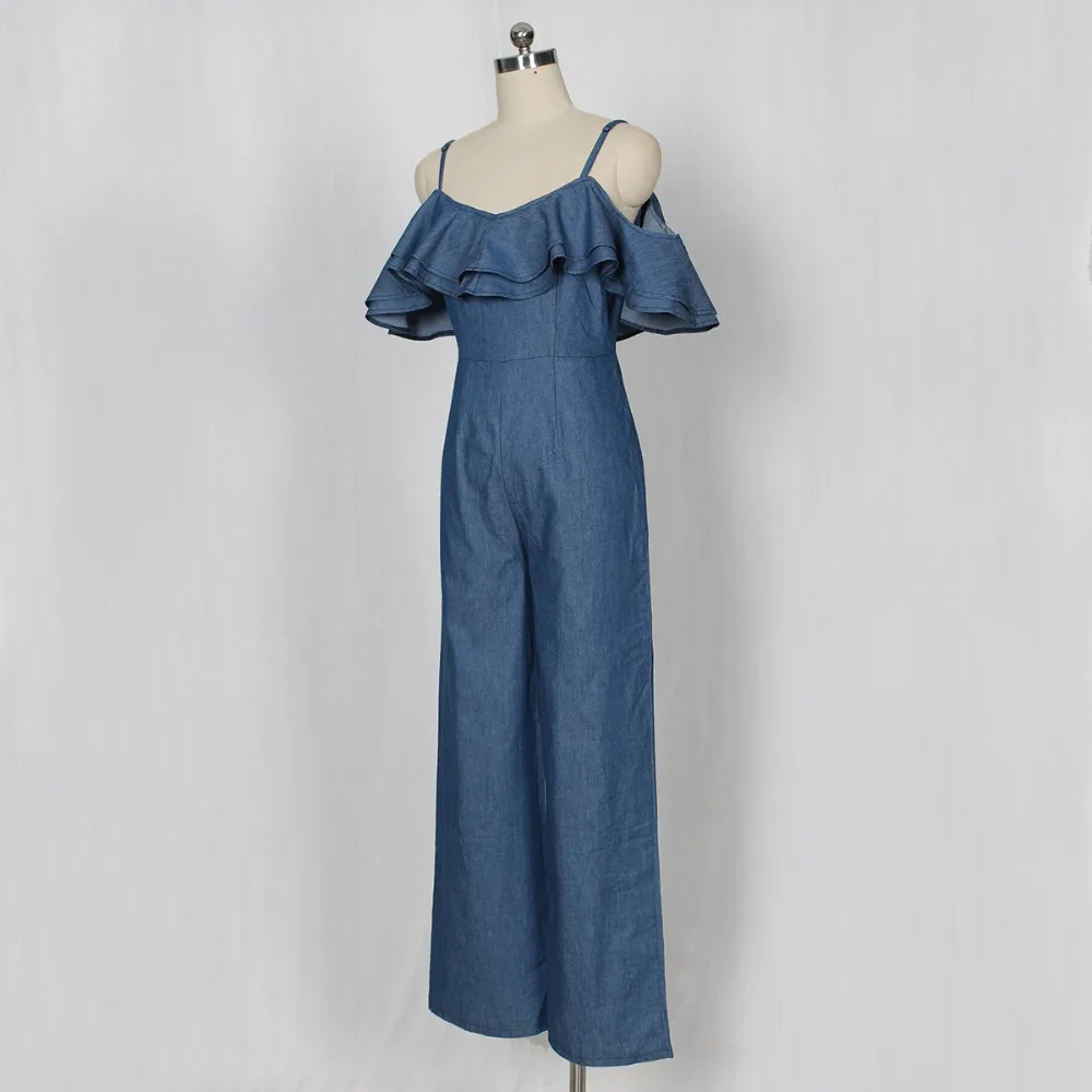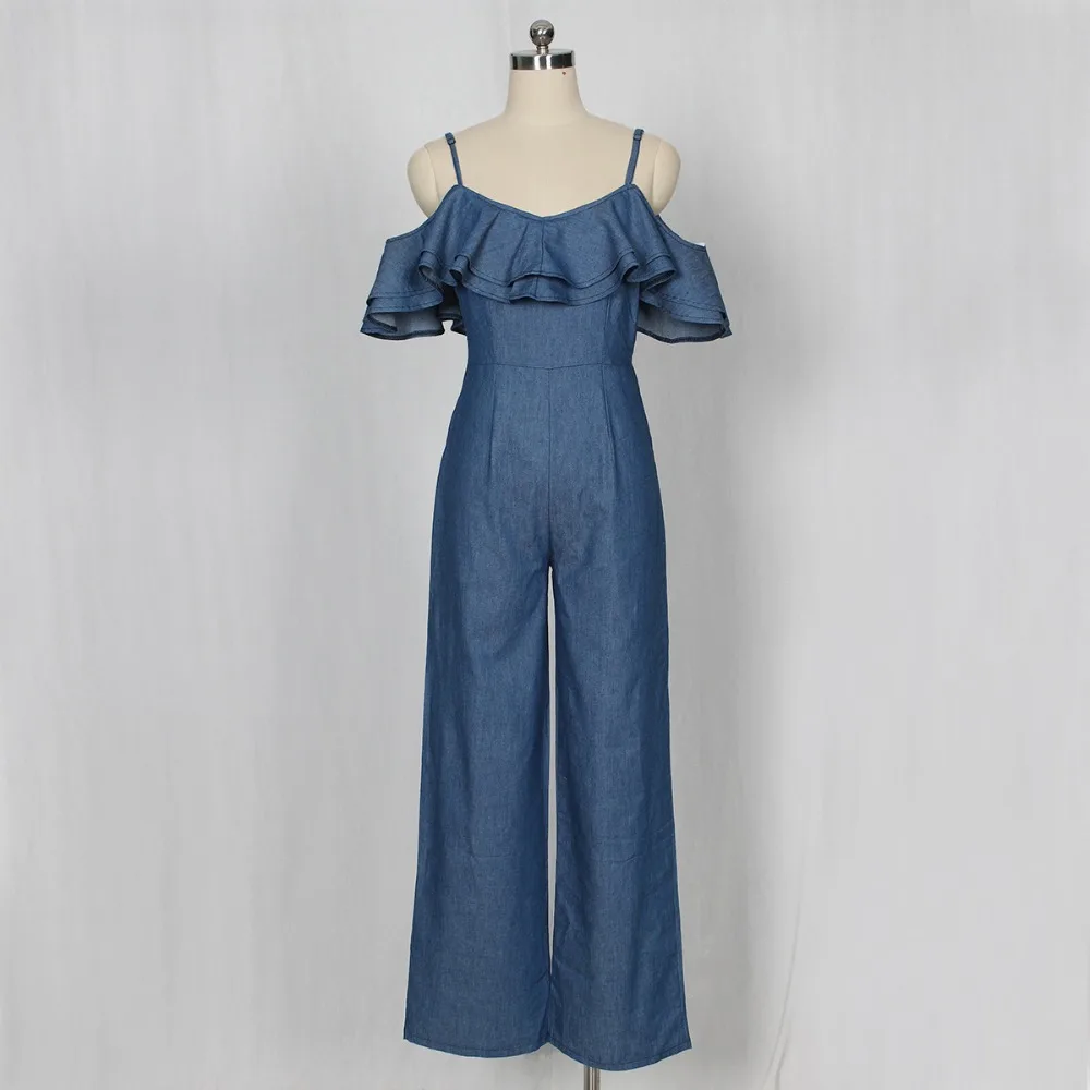 Style: Casual Spaghetti Strap Blue Loose Women Jumpsuit