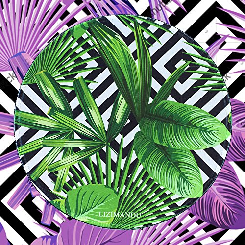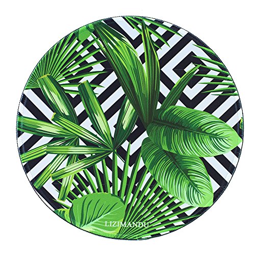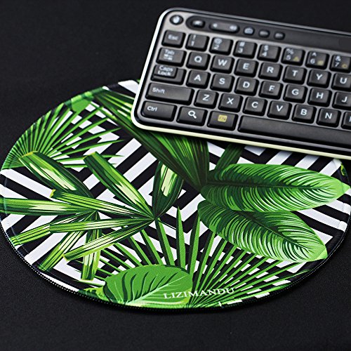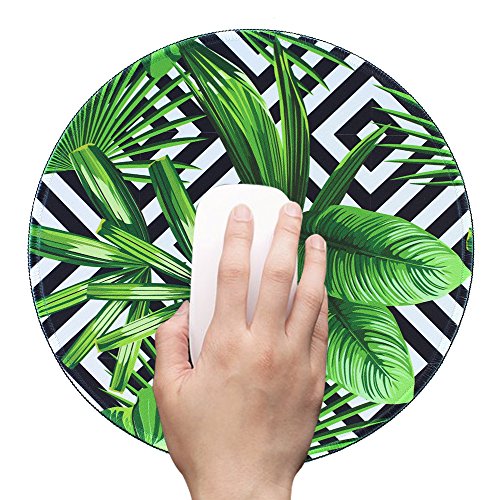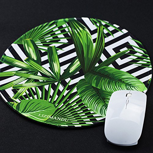 Mouse Pad (9.8 inch x 9.8 inch) ,Lizimandu Premium Quality Pattern Anti Slip Computer PC Round Mouse Mat Soft Comfort Feel Finish(Black Striped Leaves)