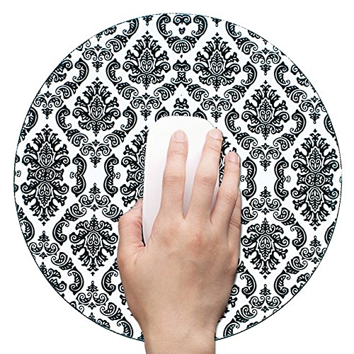 Mouse Pad (9.8 inch x 9.8 inch) ,Lizimandu Premium Quality Pattern Anti Slip Computer PC Round Mouse Mat Soft Comfort Feel Finish(Lace-Black-Flower)